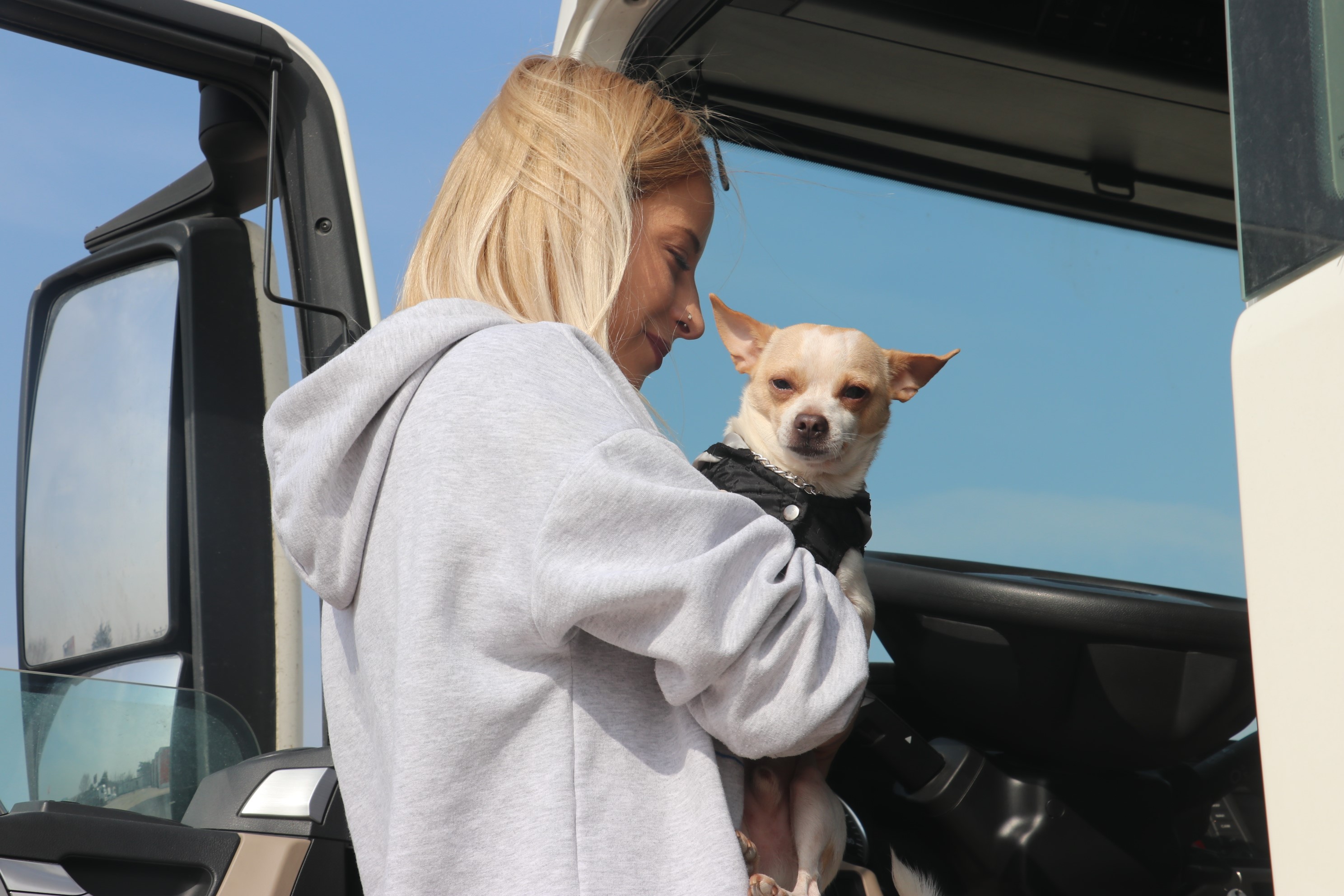 Kocaeli’de tır şoförü İmge Okur, “Umut” isimli köpeğiyle birlikte şehirler arasında adeta mekik dokuyor. 7 ay önce tedirginlikle oturduğu sürücü koltuğunda zamanla uzmanlaşan Okur, “Tırı ilk bir hafta biraz tedirgin kullandım fakat şimdi iğne deliğine bile girerim” dedi