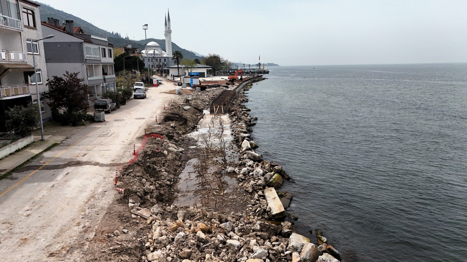 Kocaeli’yi daha sağlıklı bir geleceğe taşımak amacıyla ulaşımdan çevreye, kentsel dönüşümden tarihi ve kültürel mirasa kadar birçok alanda önemli projeleri hayata geçiren Büyükşehir Belediyesi, vatandaşların can ve mal güvenliğine yönelik yatırımlarını da sürdürüyor. Bu kapsamda, fırtınalı ve aşırı yağışlı havalarda deniz taşkınlarının önüne geçmek amacıyla Gölcük Ulaşlı sahilinde dalga kırıcı set inşa ediliyor. Hava muhalefeti nedeniyle deniz seviyesinin yükselmesiyle birlikte Ulaşlı sahil yolu ve çevredeki konutlar zaman zaman su altında kalabiliyordu. Vatandaşlardan gelen talepleri de dikkate alan Büyükşehir Belediyesi, bölgede 550 metre uzunluğunda dalga kırıcı seti hayata geçirerek taşkın riskini ortadan kaldırmayı hedefliyor.