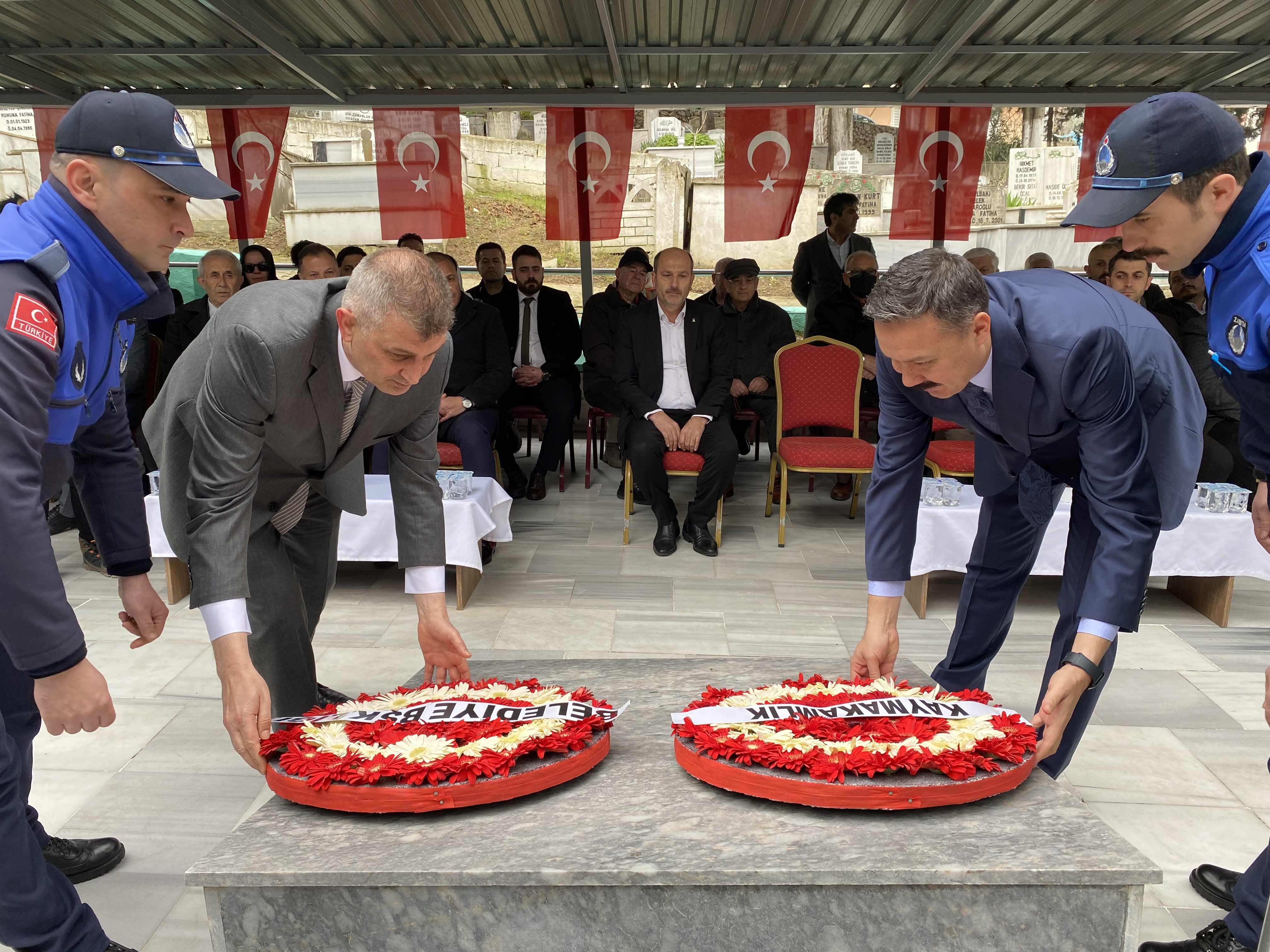 Kaymakam Gültekin, konuşmasında “Üsküdar Vapur Faciası olarak bilinen bu elim hadisenin yıllar sonra dahi olsa acısı, bu ilçenin, yaşayanların sinesinde durmaktadır. Milletleri, toplumları acı ve tatlı günleri ile birlikte anmak lazım. Bizler hatıralarına sahip çıkan bir milletiz. Yıllar sonra da bu program aynı ciddiyet ve kararlılıkla devam ediyorsa hatırasına sahip çıkıldığı içindir. Büyük devletleri de devlet yapan, bu geçmiş tarihlerine olan saygılarıdır. Bu elim facia, her haliyle iç burkucu bir vaziyettir. Kimler vefat ettiyse Allah onların makamlarını ali eylesin. Geride kalan akrabalarına sabır versin inşallah. Geçen sene bu zamanlar deprem dönemiydi. Sanki Şubat ayları, Mart ayları acı ayları gibi geldi. Geçen sene deprem bölgesindeydik. Depremin acısını yaşadık. Bugün de hasbelkader Gölcük’te 1 Mart Faciası’ndan haberdar olduk. Memleketimizin selameti, devletimizin bekası, milletimizin devamı için vefat eden, şehit olan, gazi olan bütün vatandaşlarımıza minnet borcumuzu tekrar arz ediyoruz. Bugün bu programa gelen siz değerli misafirlerimizi canı gönülden saygı ve sevgiyle selamlıyorum” dedi. Konuşmaların ardından dualar okundu ve Kaymakam Gültekin, Belediye Başkanı Sezer ve davetliler, 1 Mart Üsküdar Faciası’nda hayatını kaybedenlerin mezarlarına çiçek bıraktı. Erdem ŞENGÜL