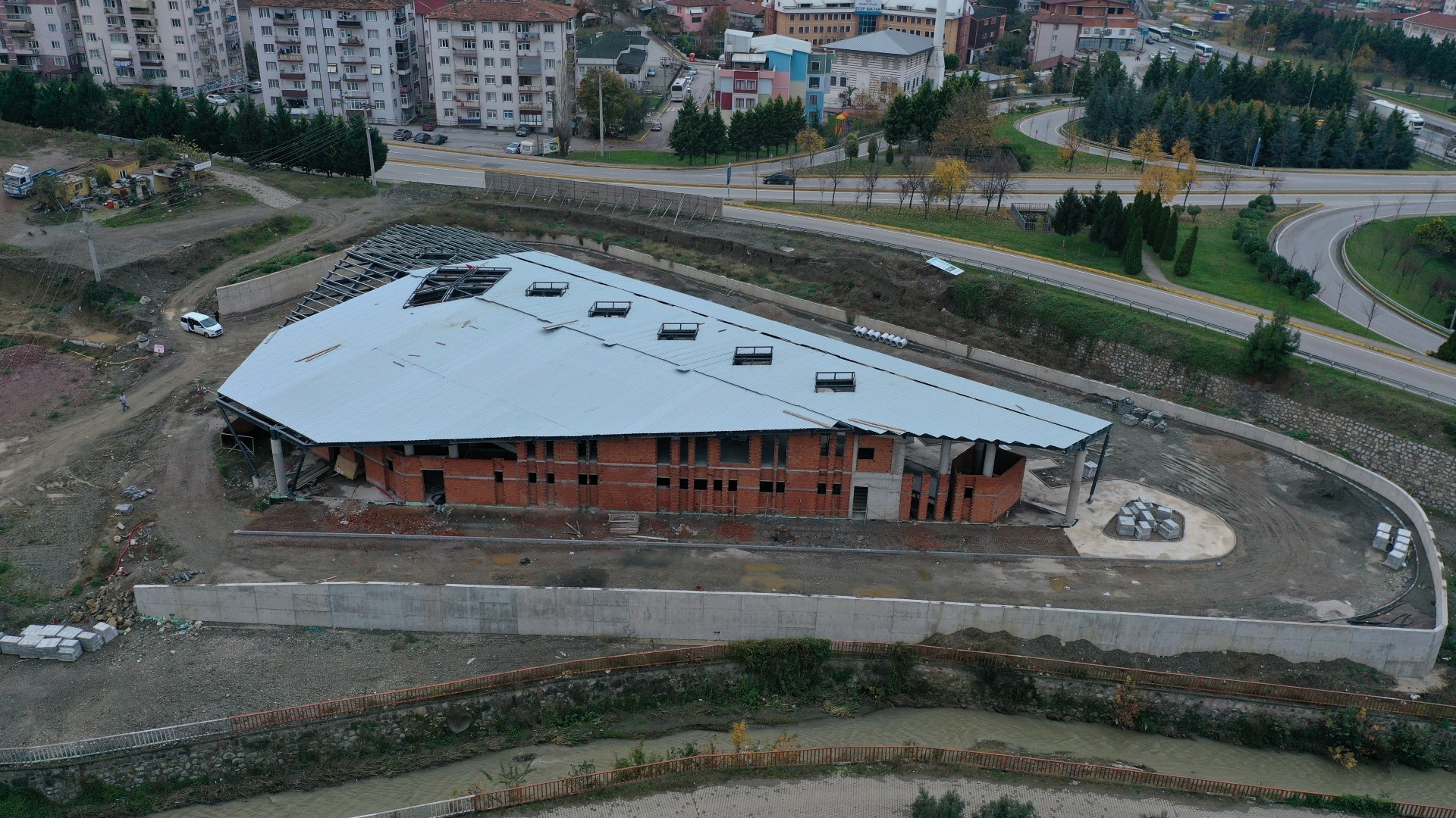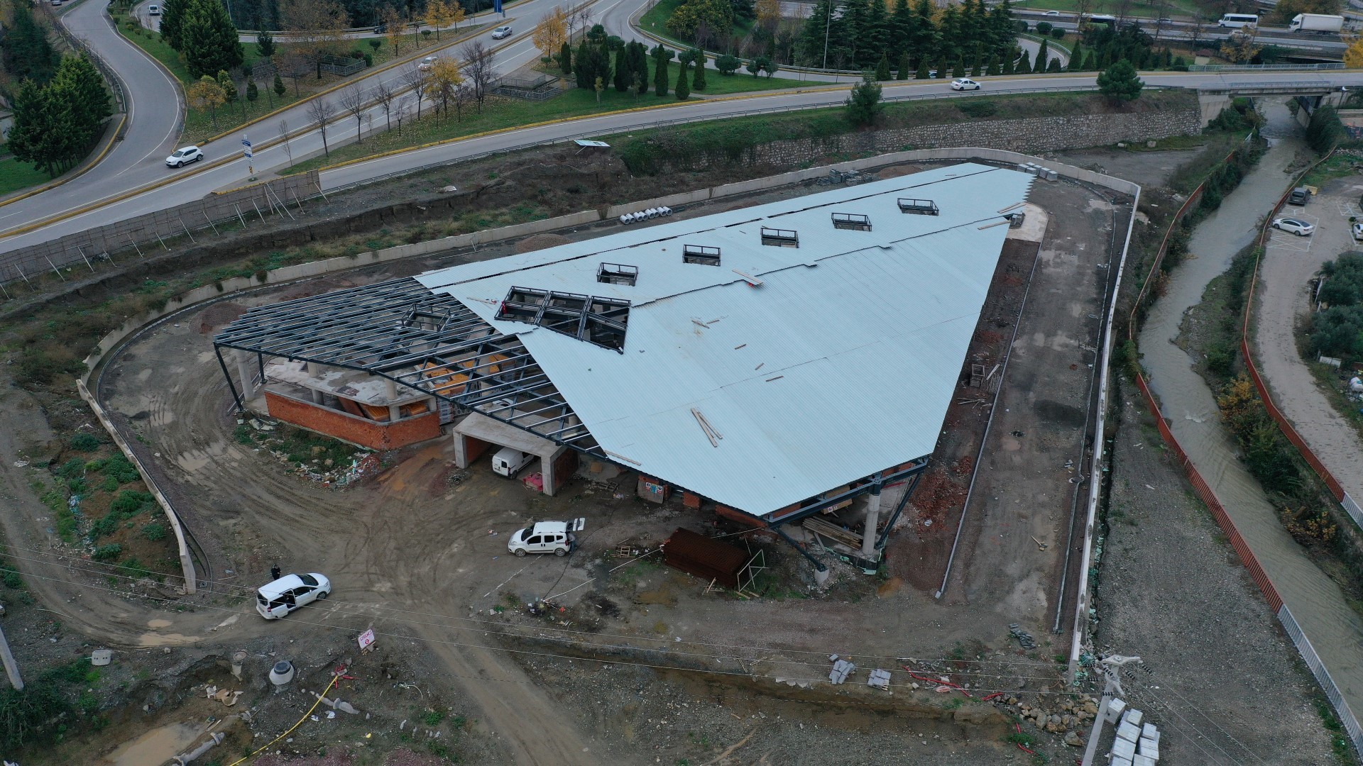 Büyükşehir Belediyesi tarafından Gölcük’te inşa edilen yeni terminal binasında çalışmalar aralıksız sürüyor. Yeni terminal binasında çelik çatı montajı tamamlandı