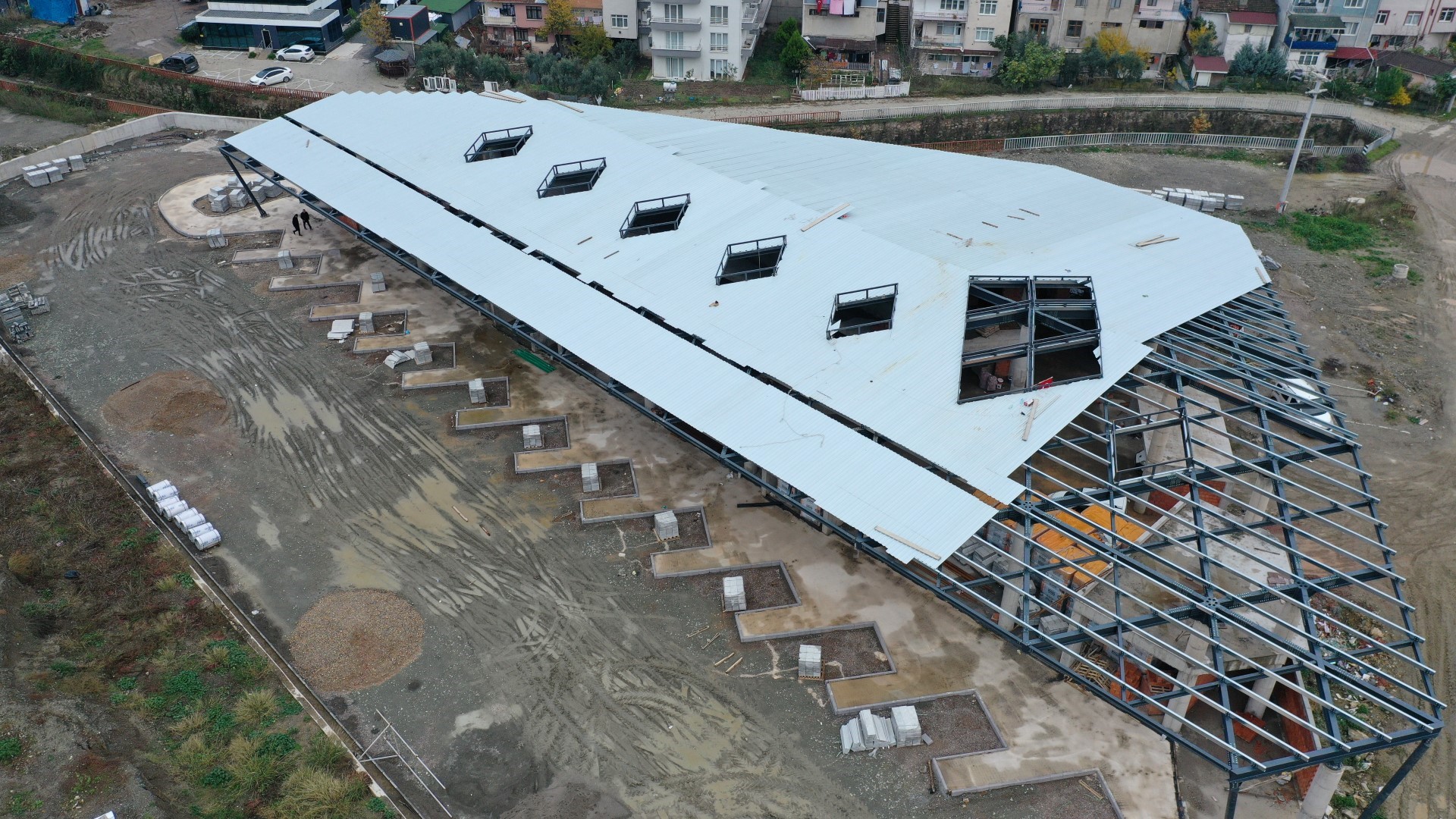 Köprüler, meydanlar ve yeni yaşam alanlarıyla şehrin gelecek vizyonuna değer kazandıran birçok projeyi hayata geçiren Kocaeli Büyükşehir Belediyesi, ulaşımda da kentin ihtiyaçları doğrultusunda önemli yatırımları hayata geçiriyor. Büyükşehir’in Gölcük terminal binasında inşaat çalışmaları devam ediyor. Yeni terminal binasında çelik çatı montajı tamamlandı. Trapez saç montajına devam ediyor.