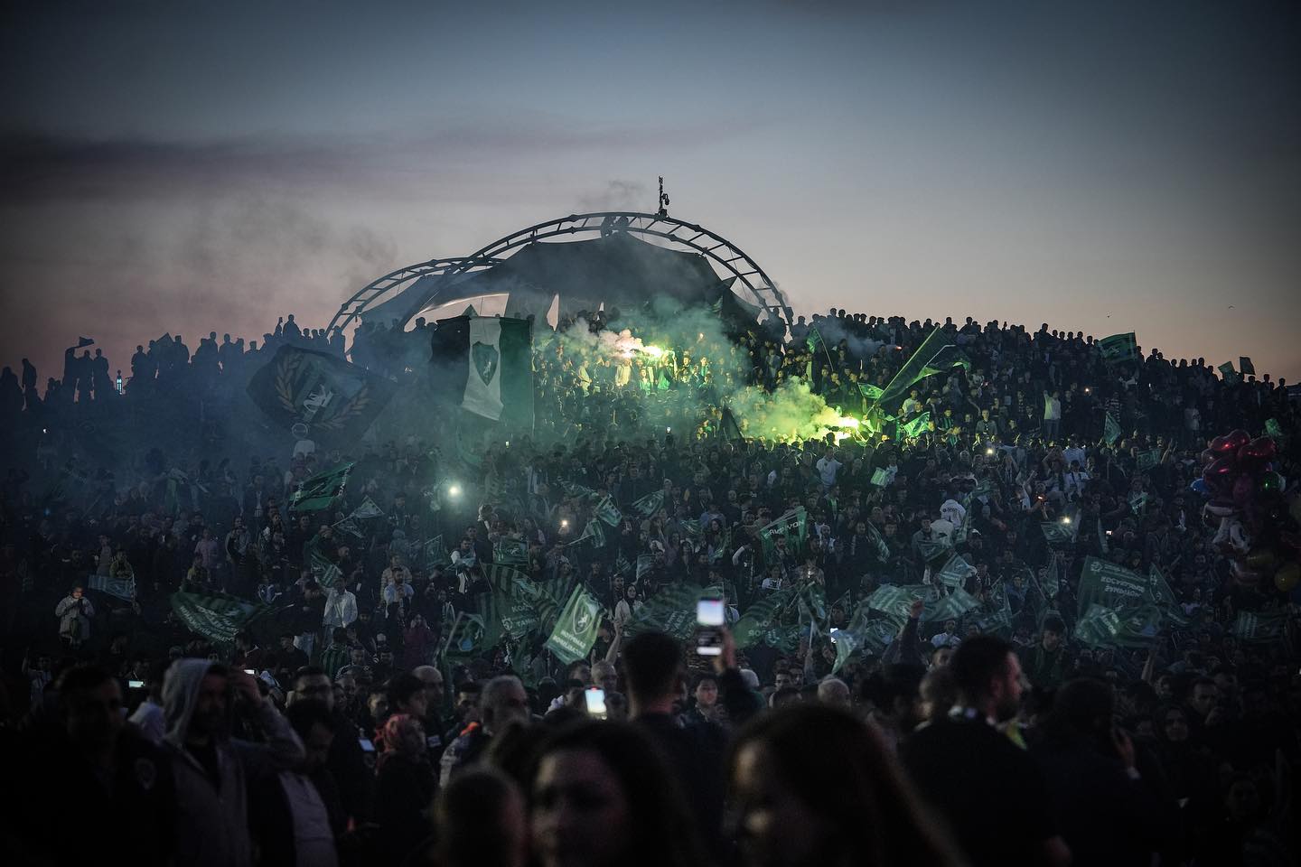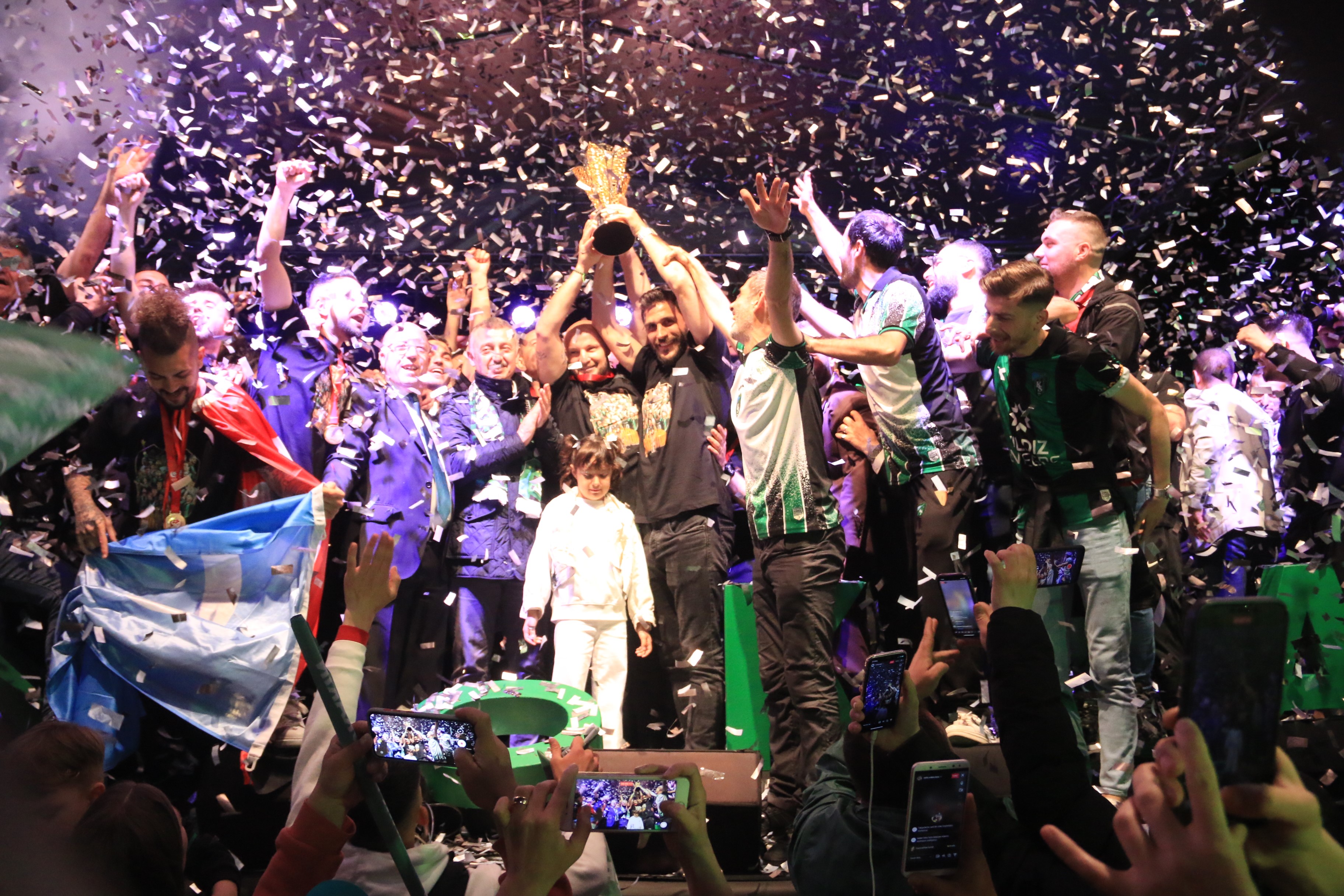 Kocaelispor şampiyonluk coşkusunu doyasıya yaşarken, yeşil-siyahlı taraftarlar Seka Park Uçurtma Tepesi’ni yeşil-siyah boyadı. Kocaelisporlu taraftarlar kupa gecesinde söyledikleri şarkılarla takımlarına sevgi gösterisinde bulundu